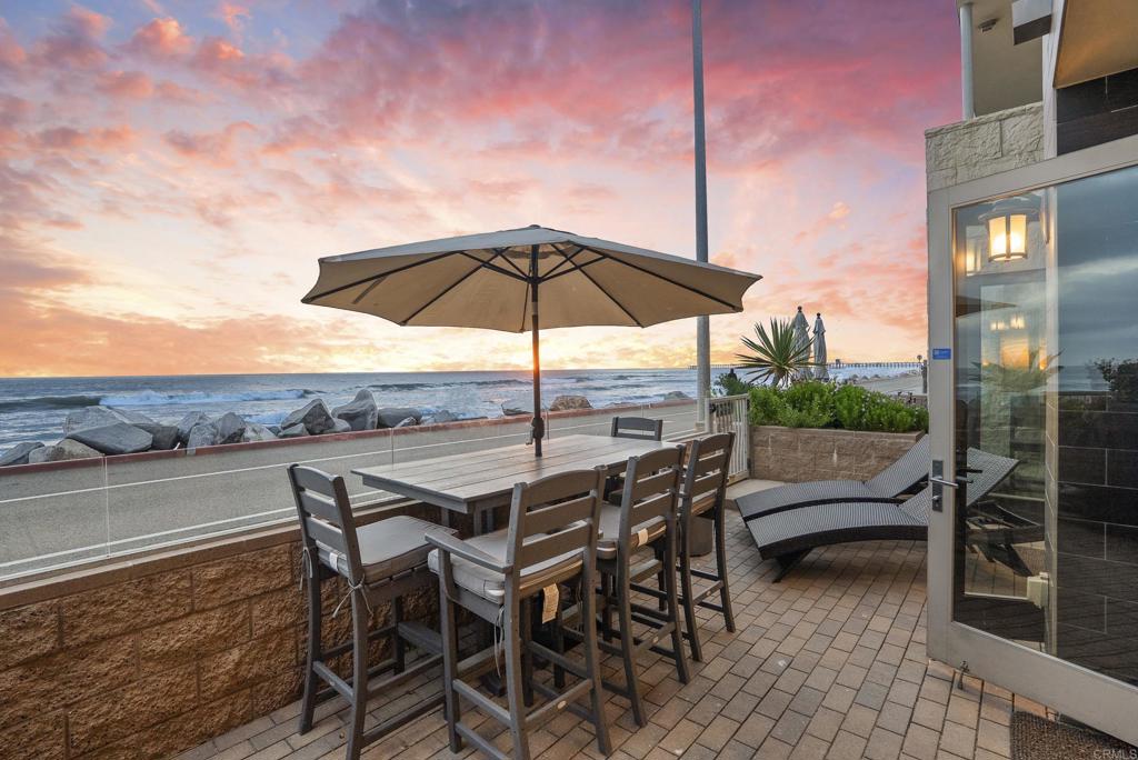 Experience true oceanfront living at one of Oceanside’s most coveted addresses—700 South The Strand. This stunning contemporary residence offers panoramic white-water ocean views creating a front-row seat to the Pacific and unforgettable sunsets. Designed with an open-concept, single-level floor plan with no stairs, the home offers easy, seamless access throughout. Indoor-outdoor living is elevated through expansive folding glass doors that open to a spacious private patio—perfect for relaxing, entertaining, or enjoying the beach lifestyle just steps away. The primary bedroom enjoys tranquil ocean views and direct access to the patio, offering a serene coastal retreat. The open kitchen is ideal for entertaining, featuring generous counter seating and a layout that flows effortlessly into the living and dining spaces. The residence includes two spacious bedrooms, two and a half bathrooms, private in-unit laundry, a large owner’s storage room, plus an additional private storage space conveniently accessed from the garage. Offered fully furnished and completely turnkey, this home is ready to enjoy immediately—just bring your suitcase. The HOA allows short-term rentals, making it an exceptional opportunity for both personal enjoyment and investment potential. Additional highlights include stair-free access, two assigned parking spaces in a gated, secure garage, and a striking contemporary building design that stands out along The Strand. Located moments from the pier, harbor, shops, dining, and all that downtown Oceanside has to offer, this is coastal luxury living at its finest. Don't miss your chance to own a slice of paradise!